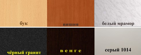 Цвета пластика:бук, вишня, белый мрамор, черный гранат, венге