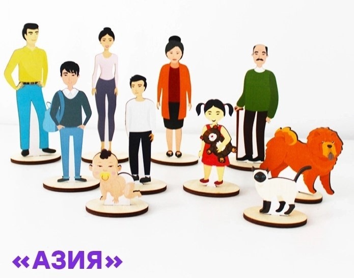 Предназначен для работы с семейными сценариями и этнокультурными особенностями в рамках системной терапии. Фигурки изображают членов азиатской семьи. Визуальные элементы помогают акцентировать особенности коммуникации и роли в традиционной семье.