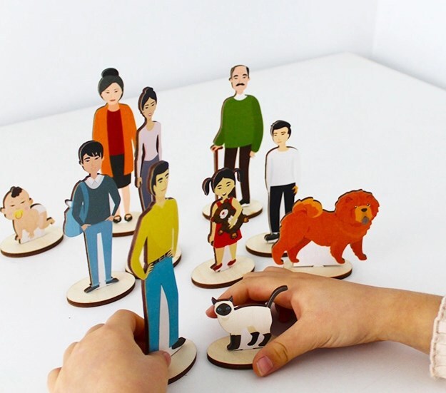 Фигурки во всех наборах выполнены из прочного древесного композита с УФ-печатью, что придаёт им выразительный и устойчивый к износу вид. Каждая фигурка снабжена подставкой, что упрощает моделирование семейной структуры и повышает наглядность при работе в терапевтическом пространстве.