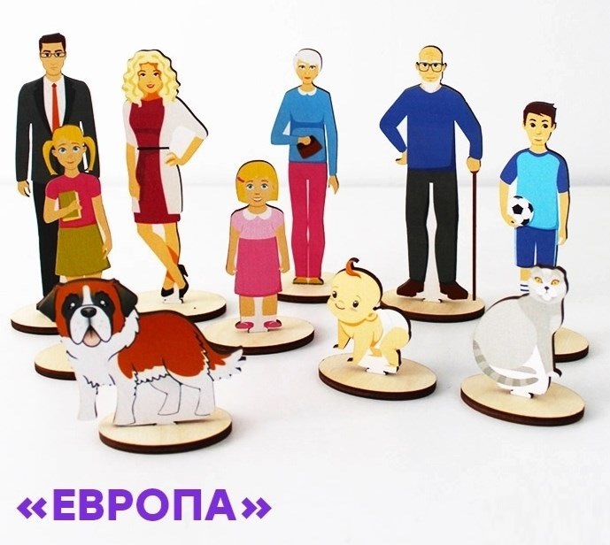 Фигурки отражают европейский внешний вид и привычную структуру семьи. Уместны как в классической терапии, так и в психопедагогической работе. Набор используется для построения классических семейных систем, характерных для европейской культурной модели.