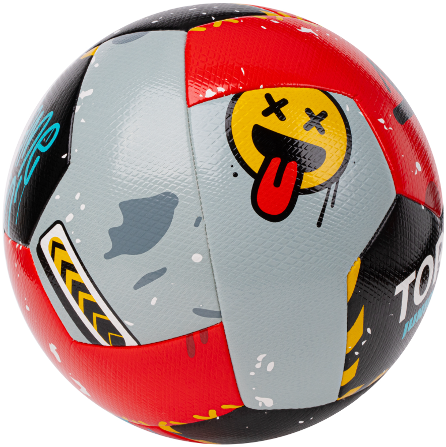 Мягкий полиуретан толщиной 0.7 мм на тканой основе со структурированной поверхностью,значительно улучшает сцепление между мячом, бутсами и перчатками, способствует лучшей передаче силы удара. Слой высокотехнологичной 2-мм сверхмягкой пены, ламинированный 4мя слоями прочной ткани с использованием латексного клея, делает мяч мягким и износостойким. Резиновая камера с бутиловым ниппелем.